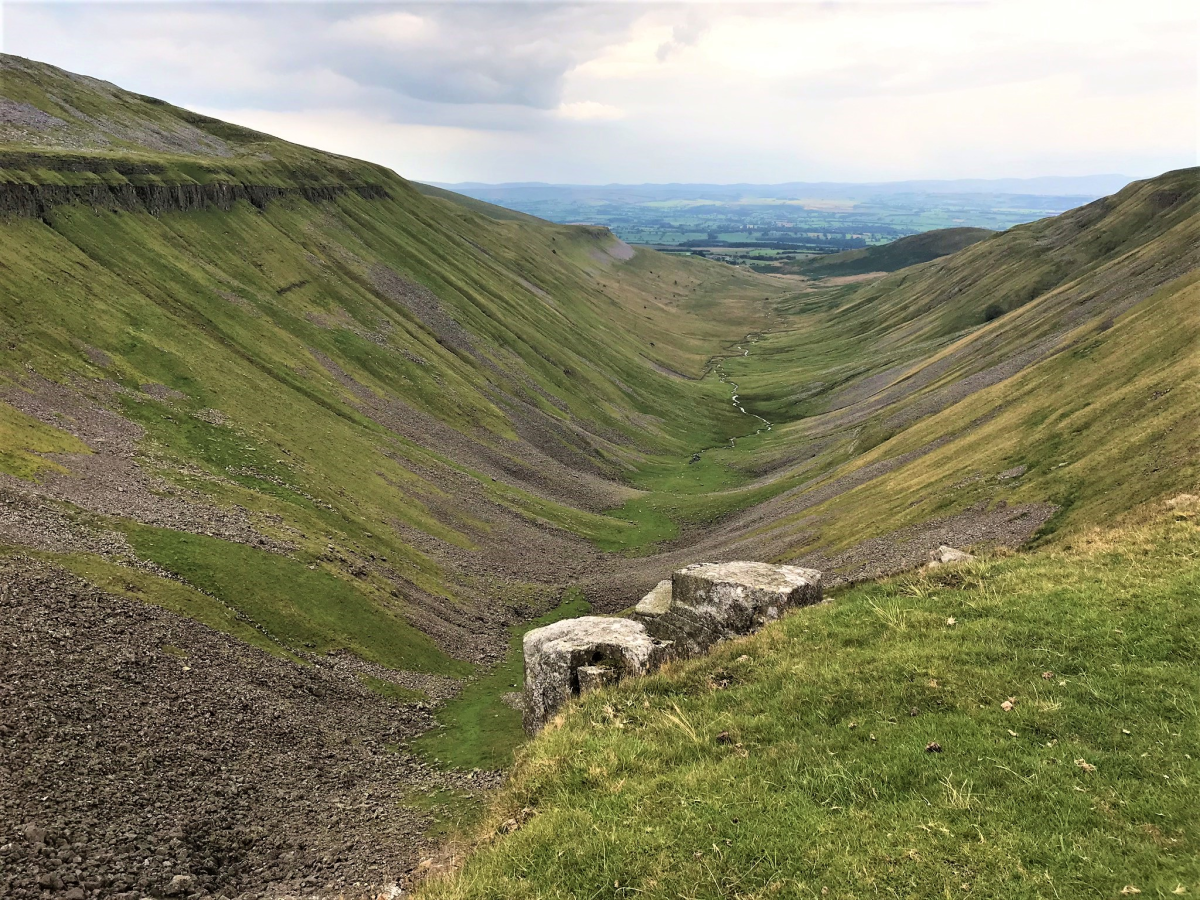 High Cup Nick lies at the start of the Teesdale Way although strictly not in Teesdale, it does lead across the Tees watershed and I am including it here because everyone should walk it at least once in a lifetime. Walkers are afforded some of the best views in England. The U shaped glaciated valley is the stuff of geographers dreams and catching sight of the Whin Sill adds to the drama.
